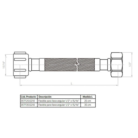 LLAVE ANGULAR C/FLEXIBLE HE-HE 1/2X15/16 X 35 CM