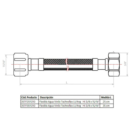 FLEXIBLE VINILO LLAVE ANGULAR 35 CM 3/8 HIX 15/16 HI