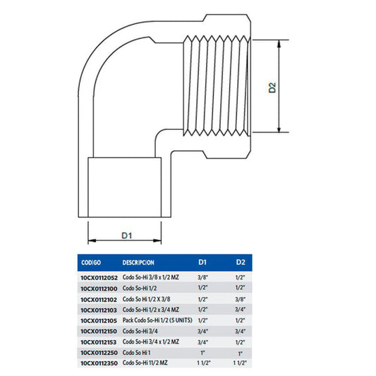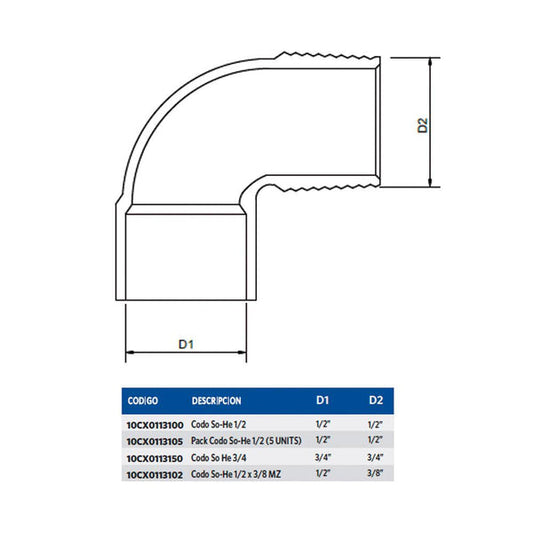 CODO HI SO 3/4 x 1/2